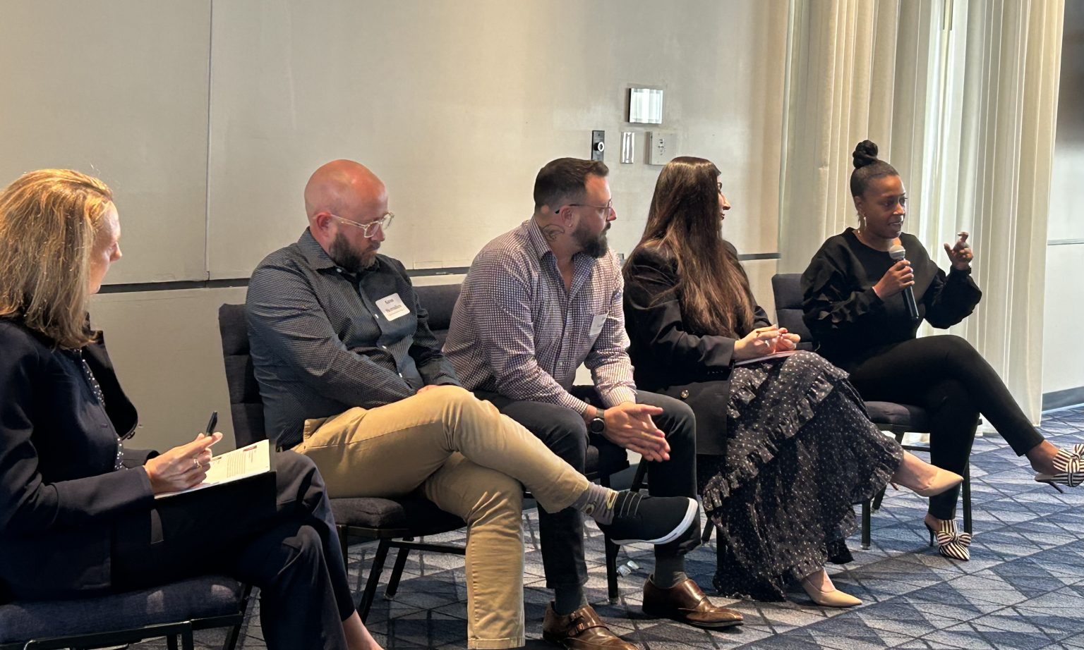 Transforming Healthcare in Missouri, Part X moderator and panelists, from left: Karen Joynt Maddox, Aaron Berendzen, Joe Gallant, Sanaria Sulaiman, Erica Signars.