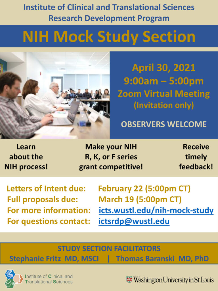 NIH Mock Study Section Apr 30, 2021 9:00 a.m.-5:00 p.m. Online - Zoom Add to: Google Calendar | Outlook | iCal File